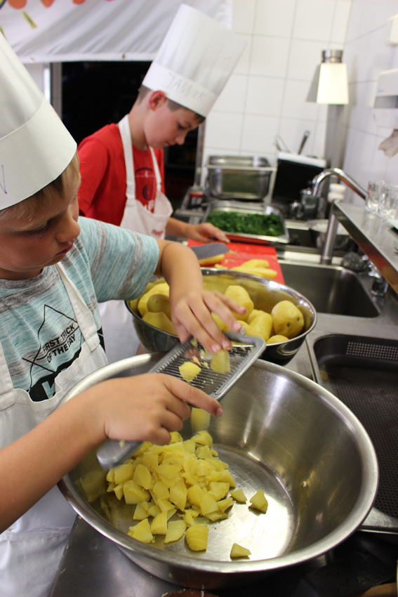 Bereits zum zehnten Mal fand am Montag, dem 11. Juli 2022, der Płomjo-Kochkurs im Bautzner Restaurant Wjelbik statt. Neun Jungen und Mädchen – unter anderem aus Lohsa, Panschwitz-Kuckau und Hoyerswerda – haben zwei Stunden mit Koch Thomas Lukasch gekocht und ein Menü zubereitet. Eltern und Großeltern durften sich gefüllte Hühnerbrust mit Reis und Champignons schmecken lassen. Als Vorspeise gab es Kartoffelsalat mit Ei und als Dessert Eis mit gebackenen Sommerfrüchten.