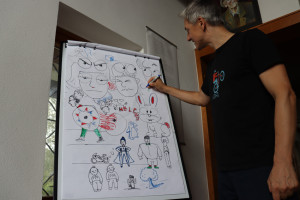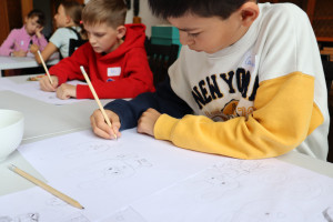 Für 25 interessierte Schüler und junge Künstler fand am Freitag und Samstag, dem 27. und 28. September 2024, im Haus von Jurij Brězan in Horni Hajnk der inzwischen 7. sorbische Comic-Workshop statt. Der bekannte Illustrator Stefan Hanusch führte Schülerinnen und Schüler der 3.-7. Klasse in das Geheimnis des Comic-Zeichnens ein. Unter seiner Anleitung übten sie, verschiedene Figuren, Bewegungen, Gestiken und Mimiken zu zeichnen. Einige präsentierten zum Schluss sogar eine eigene kleine Geschichte. In angenehmer und lustiger Atmosphäre lernten sich die Kinder kennen und inspirierten sich bei der Arbeit.